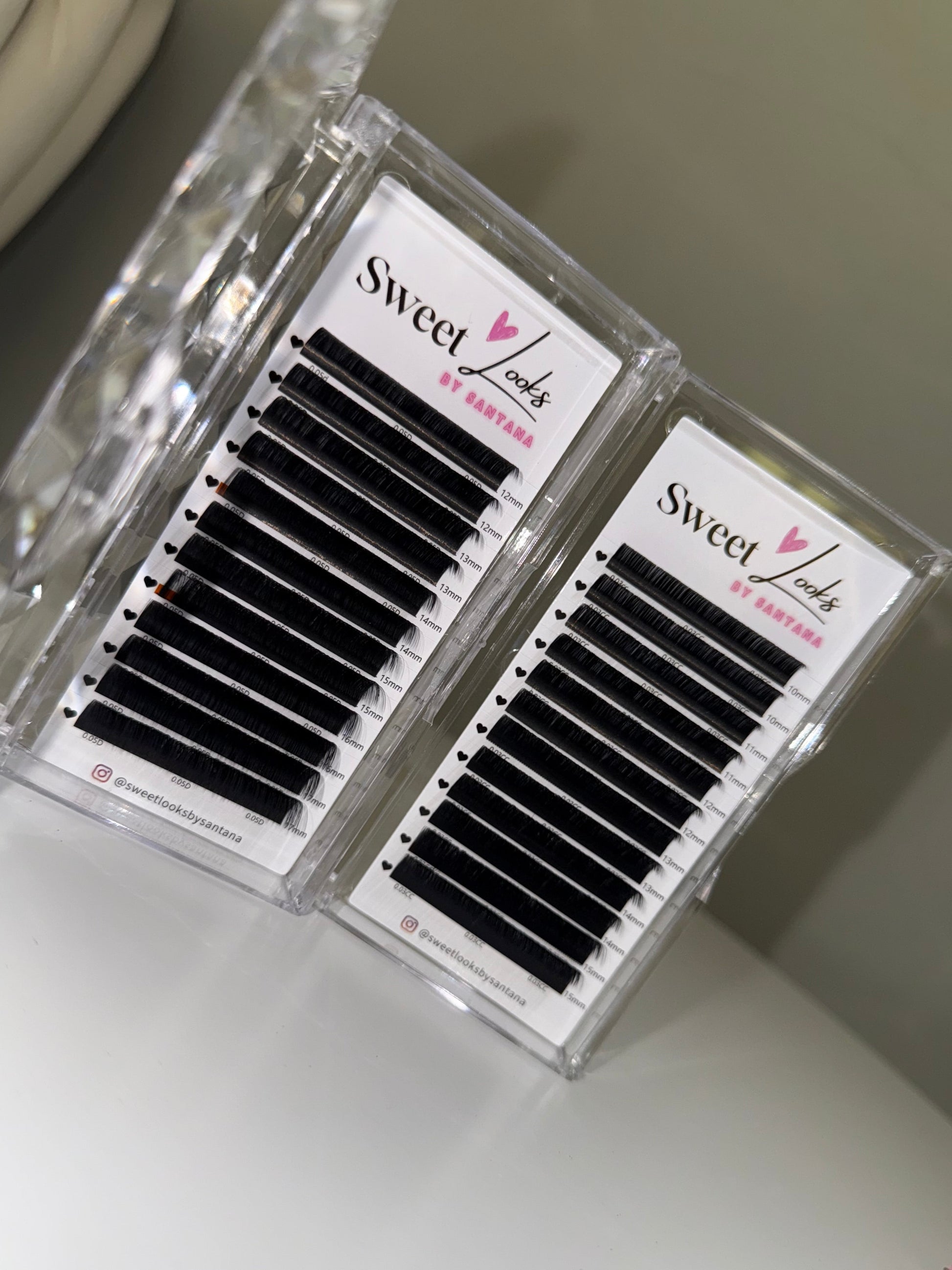 Pestañas con volumen de mantequilla tipo abanico disponibles en rizo CC + D